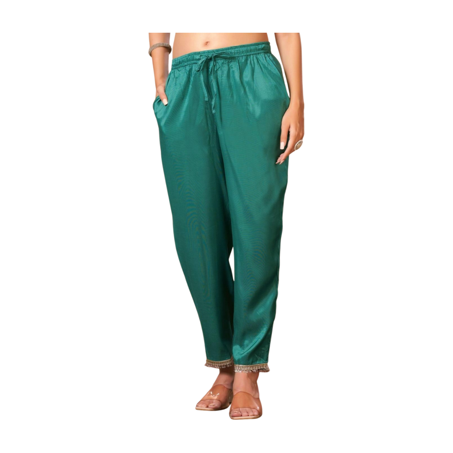 Teal Green Silk- V-neck Suits
